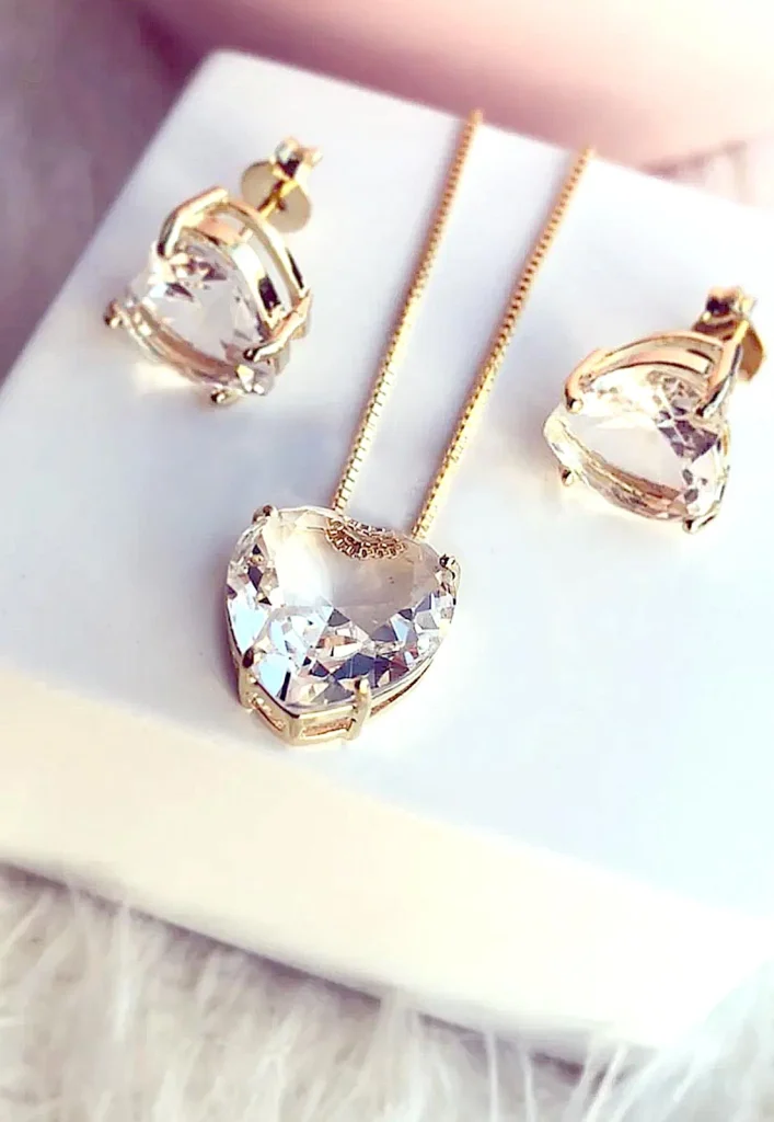 Em até 3x de R$6,17 sem juros À vistaR$17,58no PixConjunto Coração Zircônia Banhado A Ouro