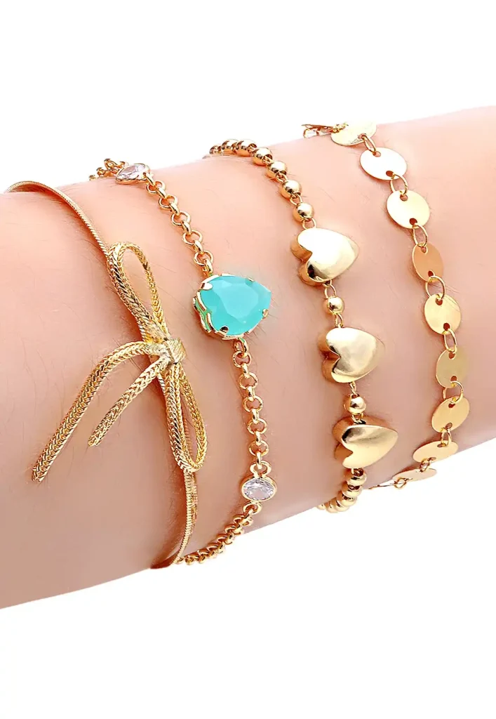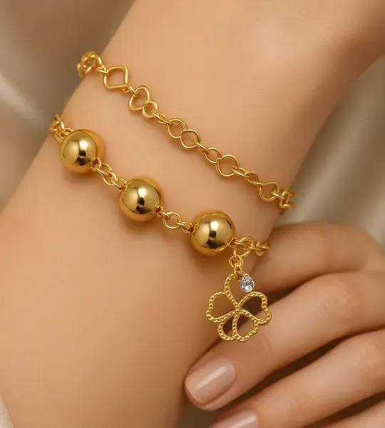 Em até 3x de R$9,27 sem juros À vistaR$26,42no PixKit De 5 Pulseiras Femininas Banhada a Ouro