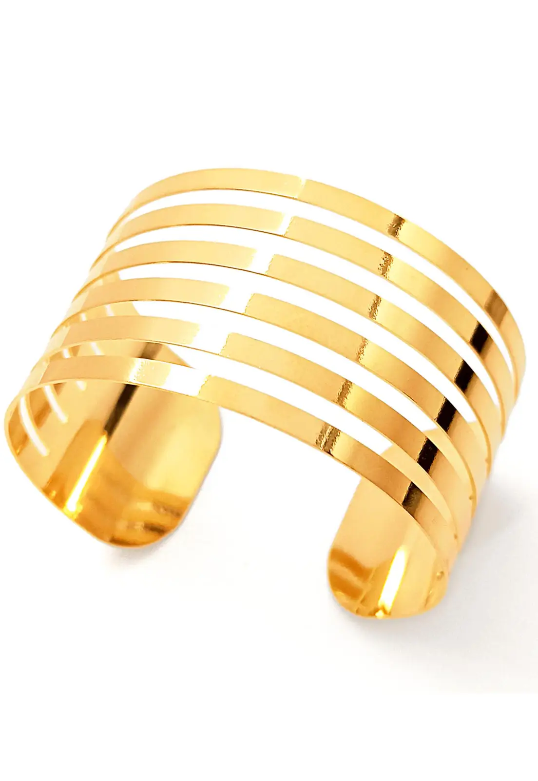Em até 3x de R$15,47 sem juros À vistaR$44,09no PixBracelete Feminino Dourado Largo Banhado A Ouro 18k