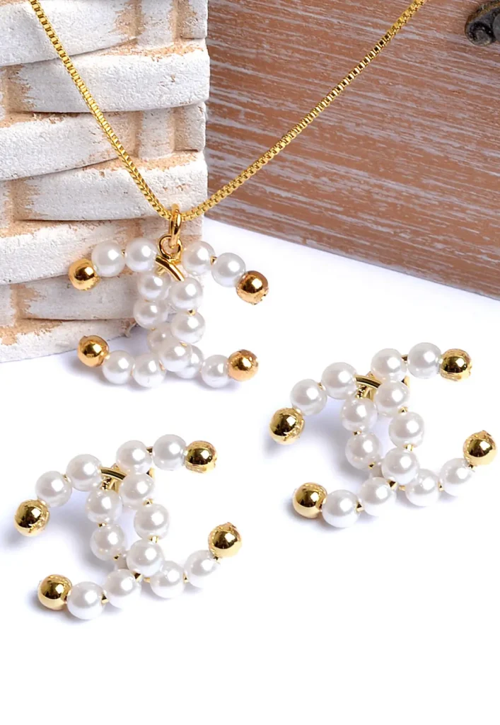 Conjunto Brinco e Colar Pérolas Channel Banhado A Ouro18k