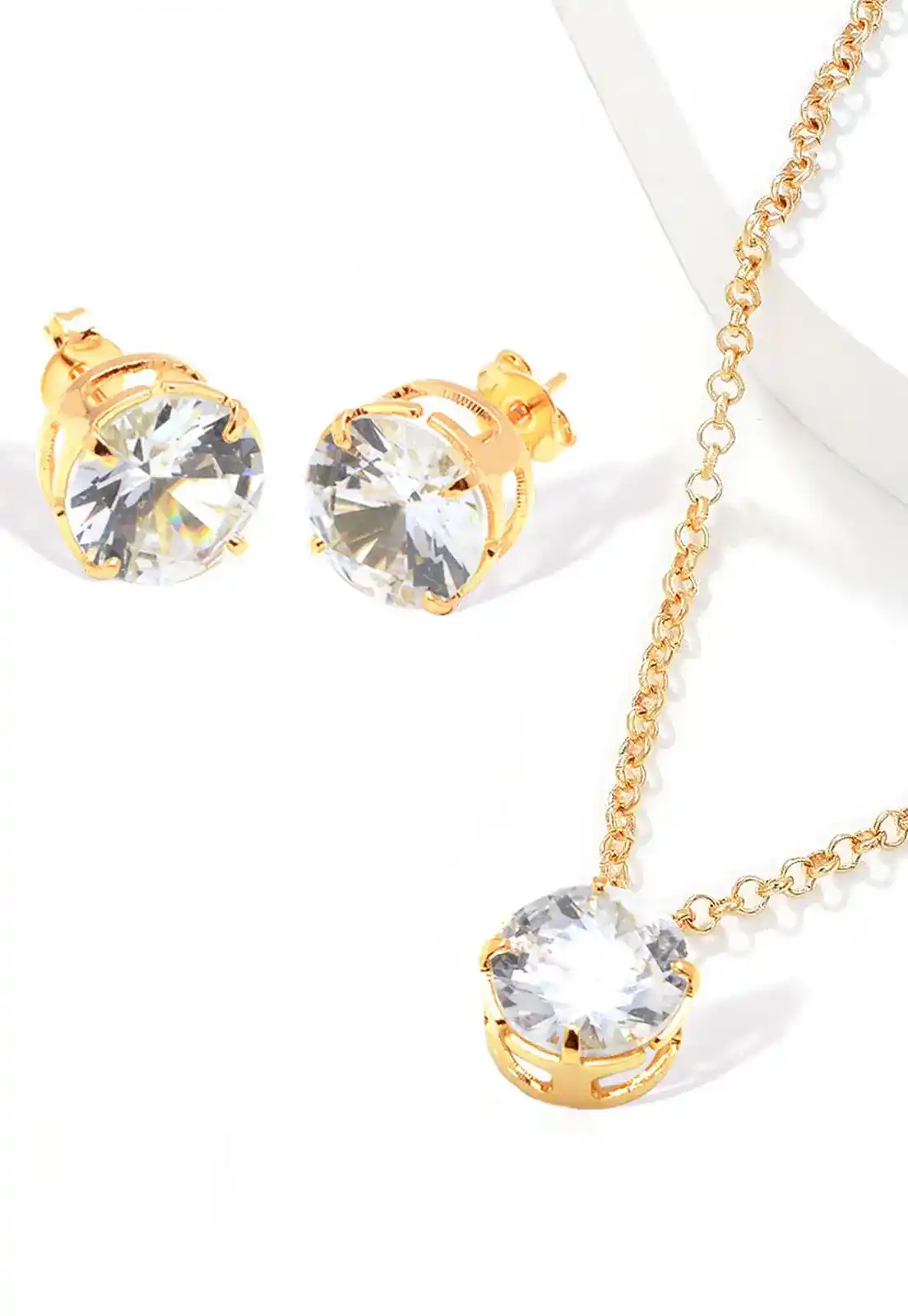 Conjunto Ponto de Luz Zircônia Banhado A Ouro