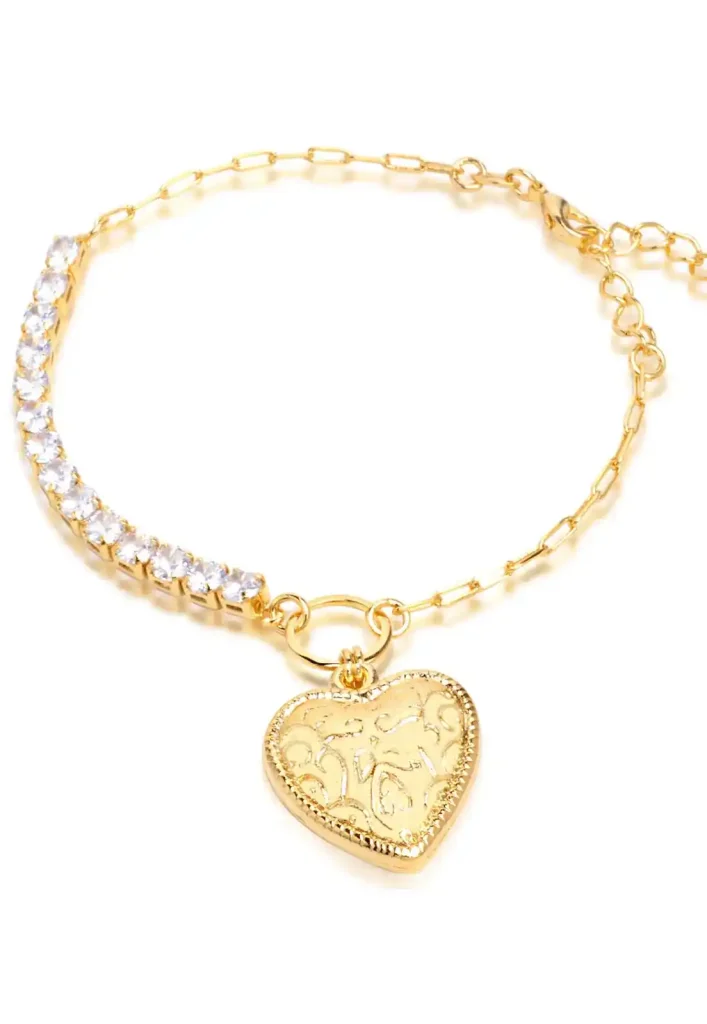 Pulseira Riviera Coração Banhada A Ouro 18k