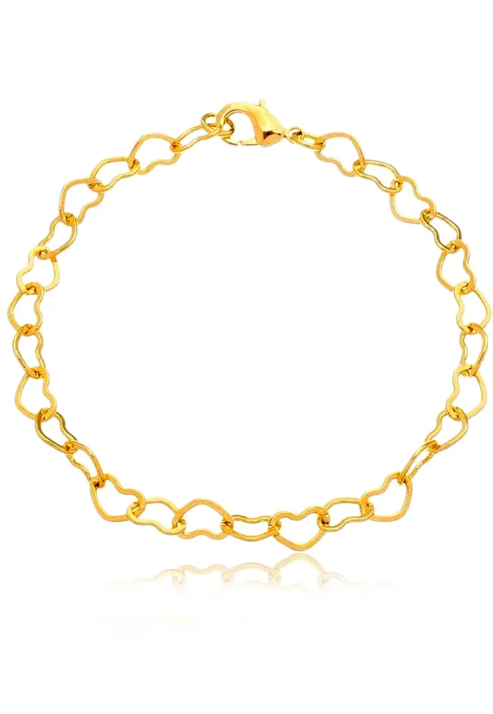 Pulseira Corrente Coração Banhada a Ouro 18k